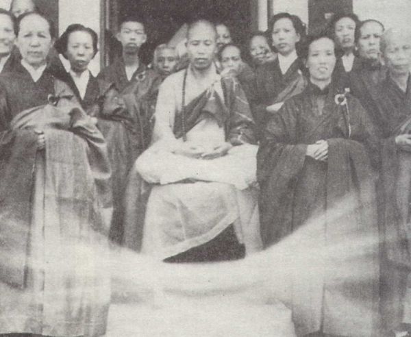 51年,这是上人在西乐园同信众团体照——上人座下出现一团光托着上人