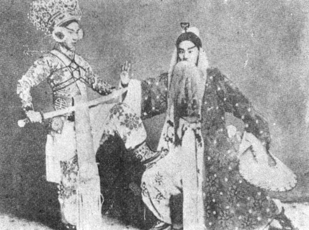 1905年以前,大師在上海客串京劇(右)之劇照。