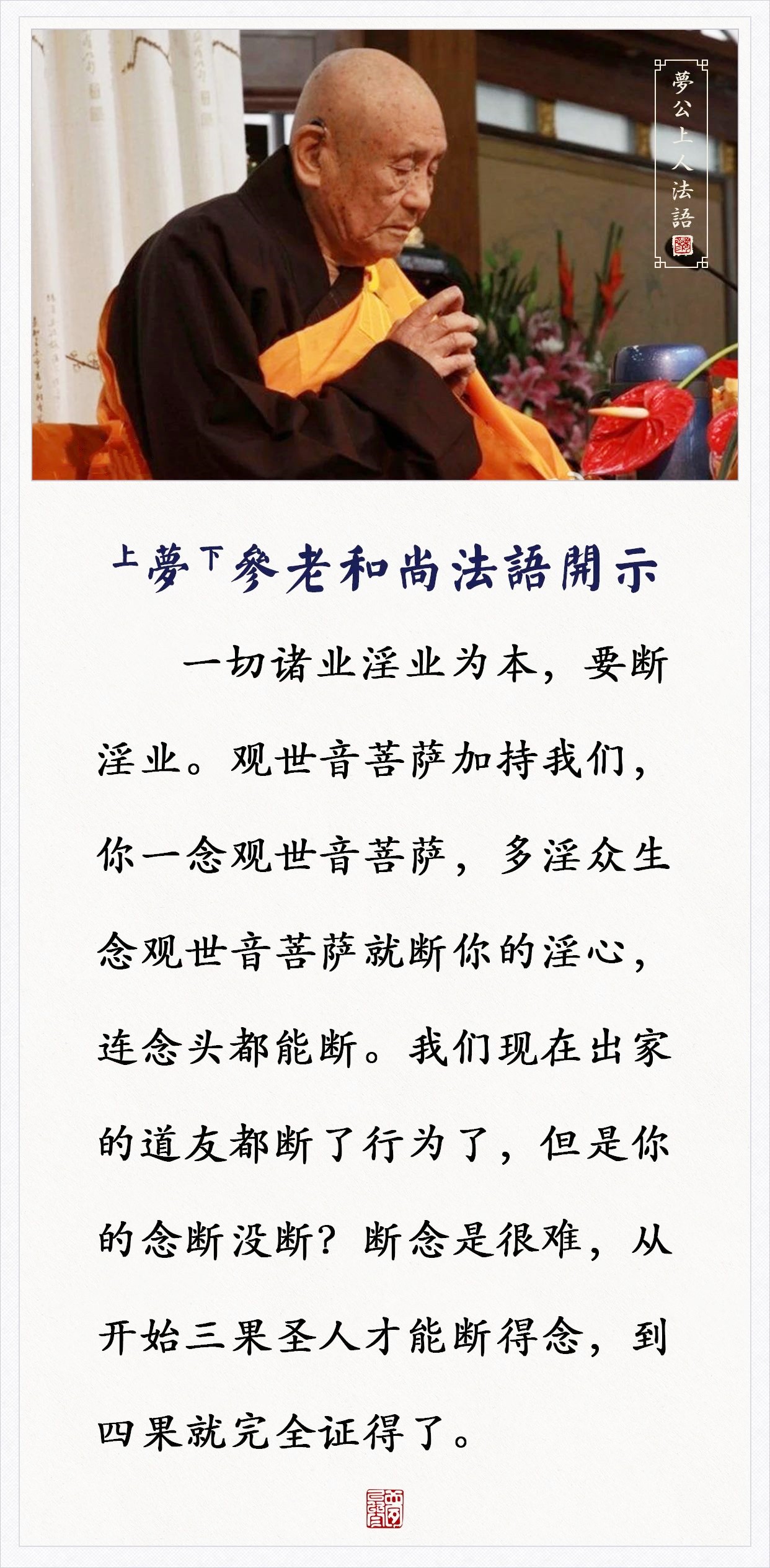 念这位菩萨就断你的淫心,连念头都能断