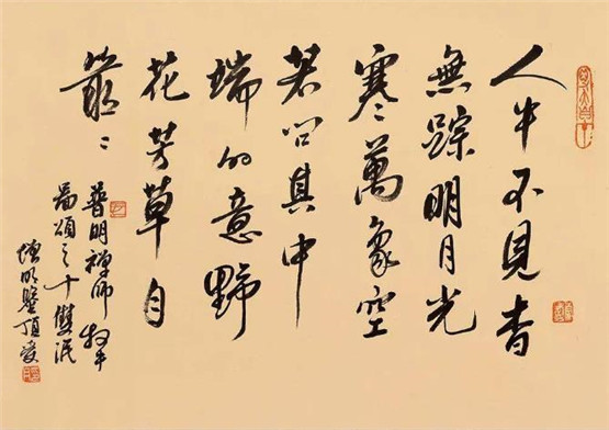 到了第十步“双泯”,能够入世,也能够出世,提得起也放得下,能够空也能够有。这个时候可以入世做事了,在家出家都可以,做男做女也可以。“双泯”,空有都没有了,人也不见,牛也不见。“人牛不见杳无踪”,照见五蕴皆空了。“明月光含万象空”,只有自性一片光明,有也可以,无也可以;入世也可以,出世也可以;烦恼也可以,不烦恼也可以。工夫到这一步境界,可以说修行有了成就,差不多可以开悟了。“若问其中端的意”,究竟怎么是对呢?很自然,“野花芳草自丛丛”,到处都是,不一定出家才能做到,也不一定在家才能够修道。得大自在,就是观自在菩萨。