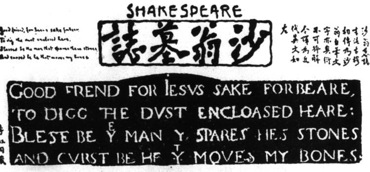 弘一大師於1911年將莎士比亞墓誌銘譯為近代英文,並為之題跋,發表於民國3年上海太平洋報。