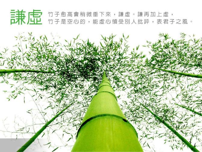 八是心谦: 人生无止境,事业无止境,知识无止境.谦虚的人获得成功、赢得别人尊重;骄傲的人总是在骄傲里毁灭自己.谦虚的人善于谋求外人的助力,你谦虚时显得对方高大;你朴实和气,他就愿与你相处,认为你亲切可靠.谦虚的人得人心、合人意,极易获得人们的喜爱和欢迎.谦卑是深埋在地下的甜根,一切神圣的美德都从那里萌生.