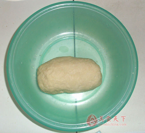 1、 把面团材料放入盆中揉成均匀光滑的面团发酵至原体积的2倍大