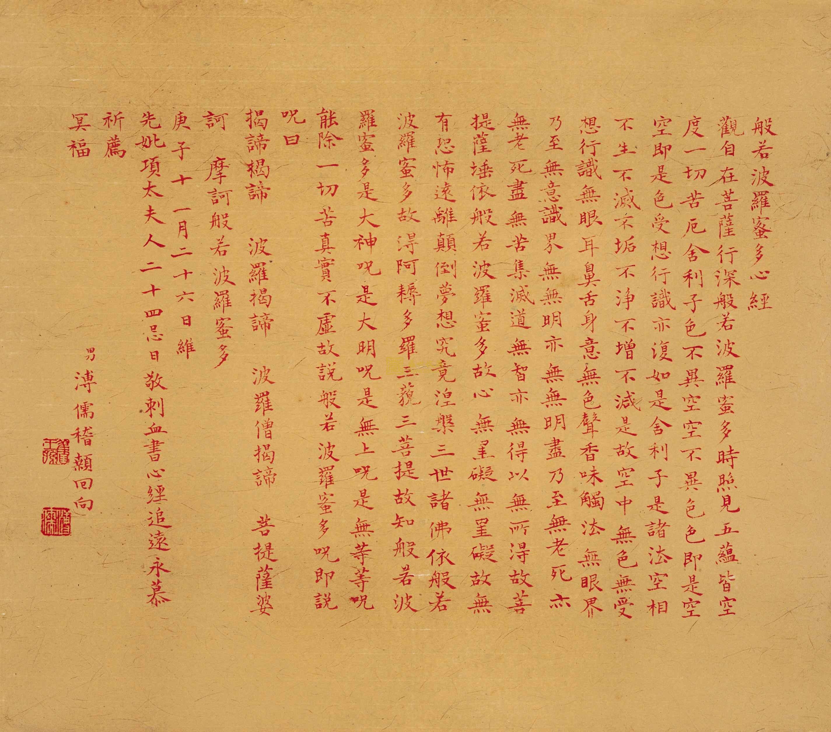 爱新觉罗傅儒血书《心经》