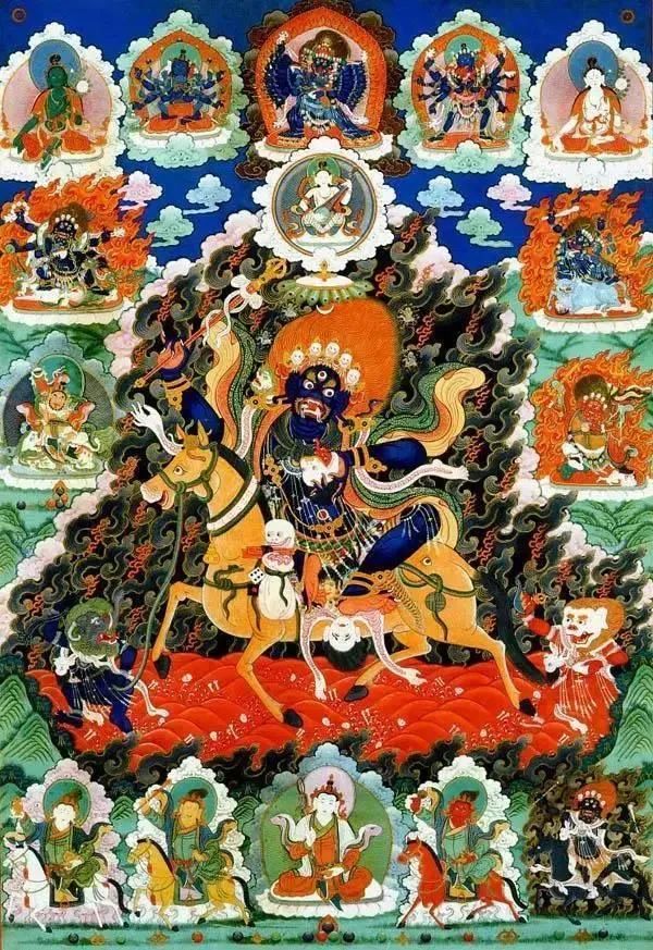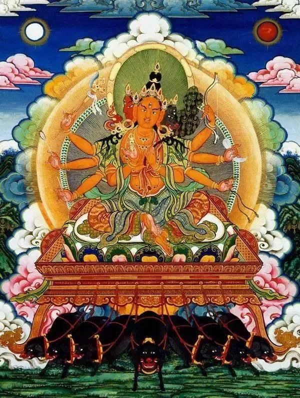 又有护善之功,故又称大德。身为蓝色,九头、三十四臂、十六腿。