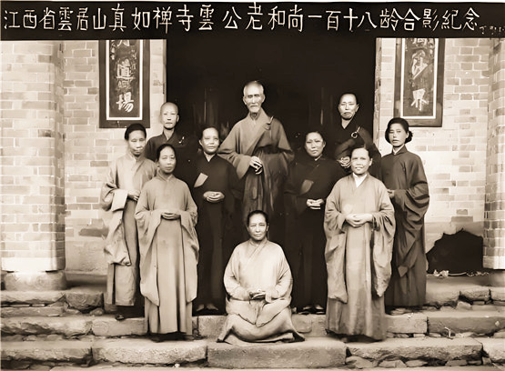 40、1957年,虚云老和尚在云居山真如禅寺与信众合影。