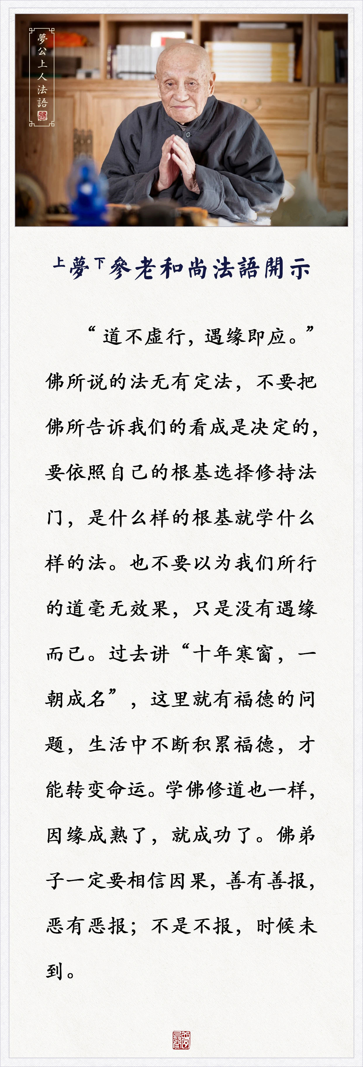 不要以为我们行道毫无效果,道不虚行,遇缘即应