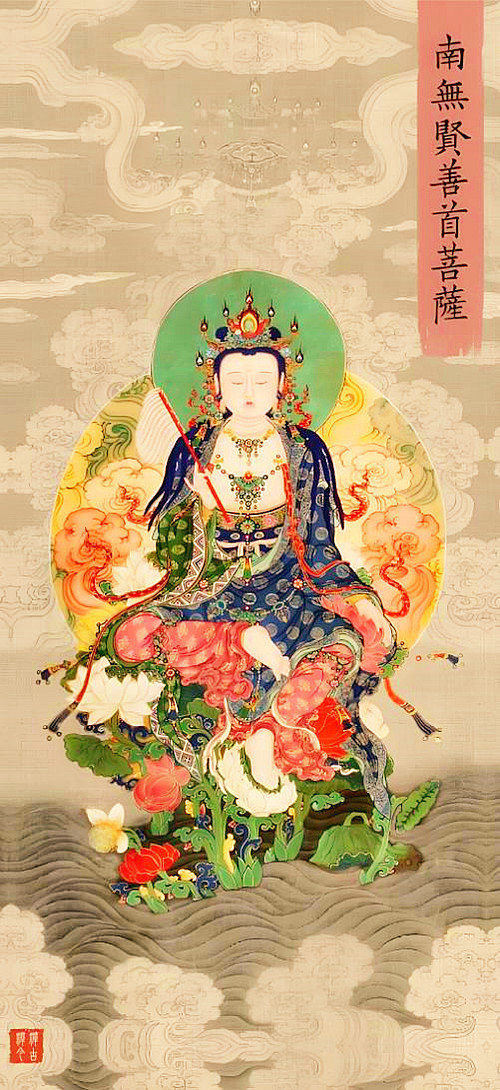 要如何成佛呢?必须先得到清净智慧,有了清净智慧,才能威德自在。如文殊菩萨于释迦牟尼佛上座即将说法时,引磬一敲说:“说法竟”。释迦牟尼佛一句话未说,又进去了。文殊菩萨此时说了两句话:“我为法王,为法自在。”这就是大威德大自在,然后就是辨音菩萨,辩才无碍,法音清净。辩才无碍,必须深入经藏,智慧如海,这是由多生累世说法之功德而来。并且还要净诸业障,我们的业障可并不那么容易消除,《楞严经》说:“理则顿悟,乘悟并销,事非顿除,因次第尽。”业障不是一下子去得掉的,要慢慢一步一步地消。业障除净以后,才能普觉圆觉等妙二觉,等同于佛。成了佛之后如何?是否就不来了呢?不,还是“诸恶莫作,众善奉行。”像贤善首菩萨所代表的意义。