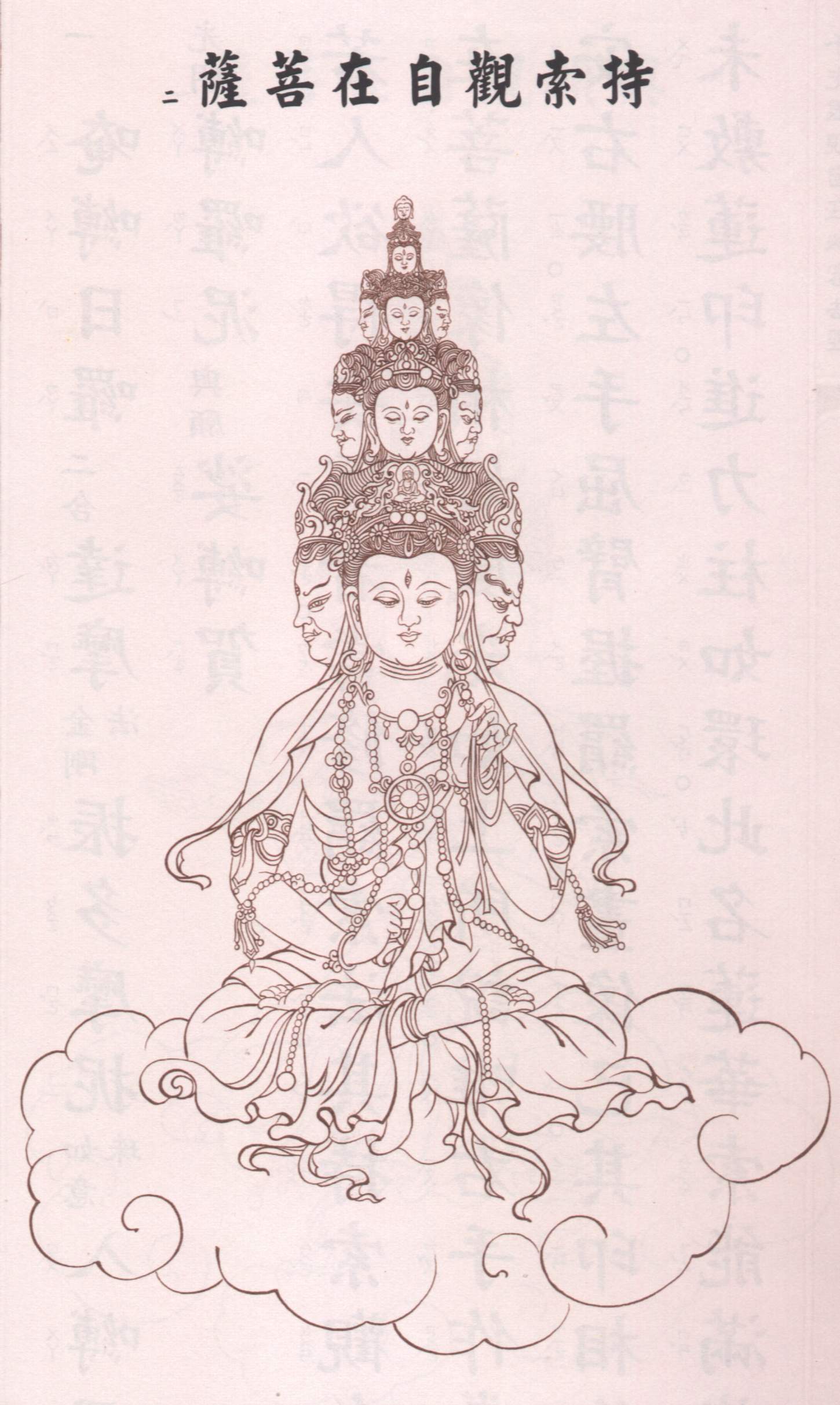 庄严的持索观自在菩萨白描大图