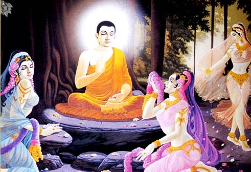 因此,他满高兴地对这四位欲界魔女说:“你们赶快到悉达多那里去,用一切办法去扰乱他清净的修行。”