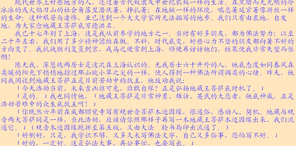读者师兄们:本文以后的“网络卷和地藏缘网录入卷”部分都是网络学子持诵地藏经的感应故事,多非正知正见,影响不好,故跳过不再续发,请多多谅解!!!