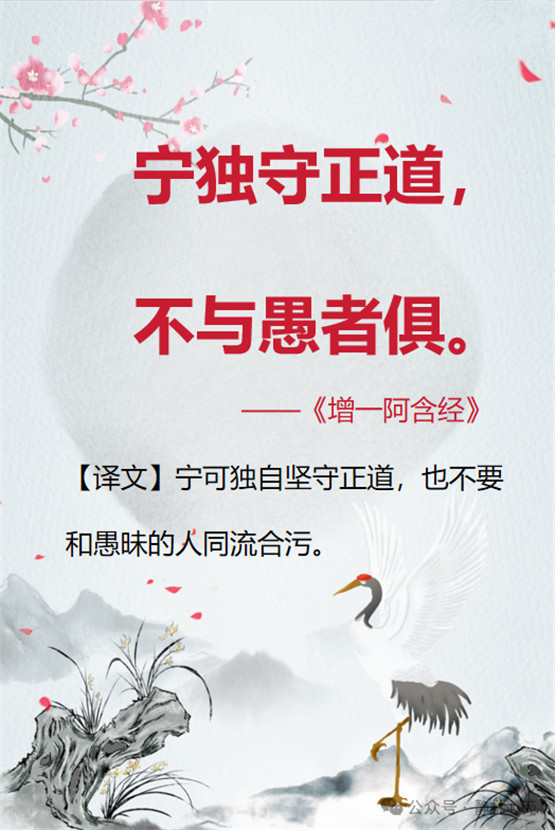 【原文】宁独守正道,不与愚者俱。 ——《增一阿含经》