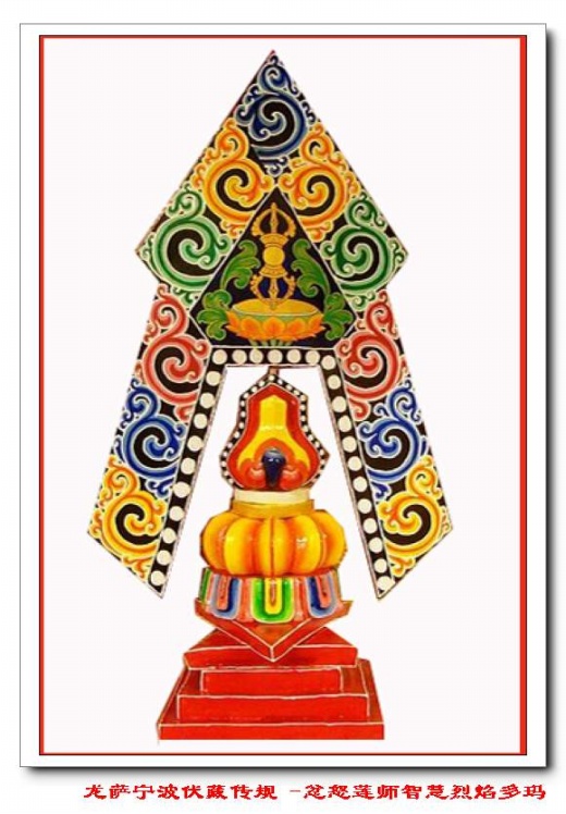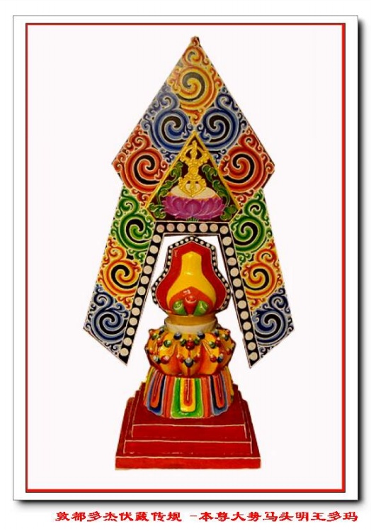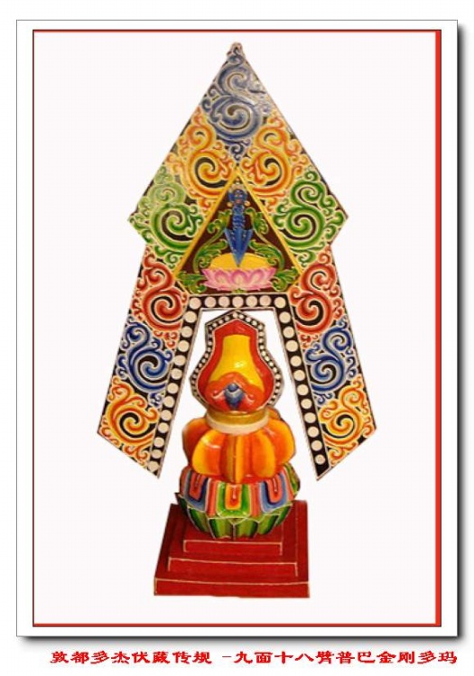 [1][1] 藏文:glud-tshabs,赎身品,亦称“供施代替品“。用彩线绕成或用糌粑捏成日用品、牲畜、房屋等模拟物,送崇时一并施舍的财物。