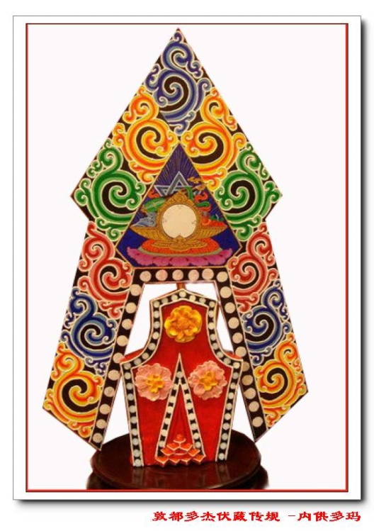 [2][2] 藏文:Tshogs-gtor,会供朵玛,用作会供的食子。食子,即朵玛,由糌粑捏成用以供神施鬼的食品丸子。