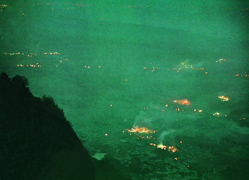 圣灯----万盏明灯朝普贤。据说,人们感念普贤菩萨对人间的恩赐,特点灯朝拜普贤,天地感动于人们的真诚,特赐福于峨眉山万盏明灯,用以朝拜普贤。因此金顶无月的黑夜,舍身崖下夜色沉沉,有时忽见一光如萤,继而数点,渐至无数。在黑暗的山谷间或明或暗,时聚时散,飘忽不定。这就是“万盏明灯朝普贤”。